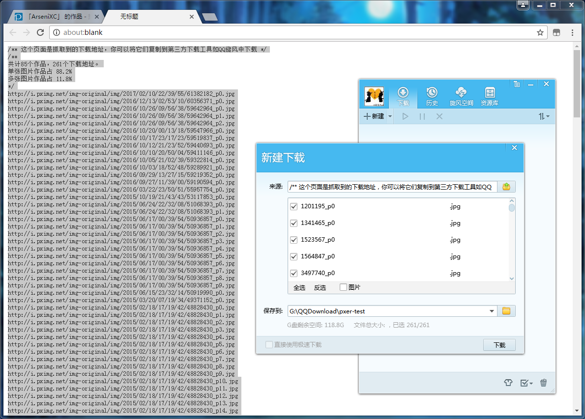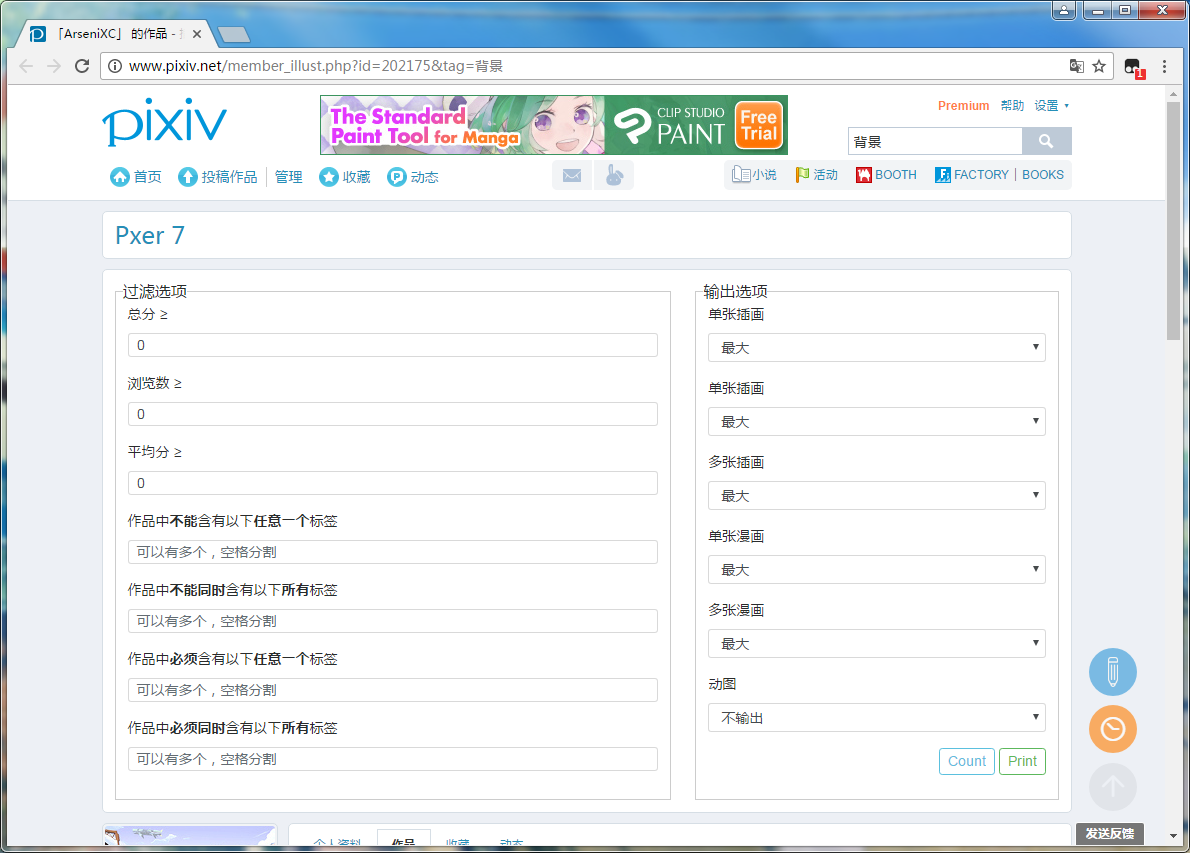 Pxer安装完,我们再打开上图中的画师作品页,发现页面中多了一个Pxer的窗口:
