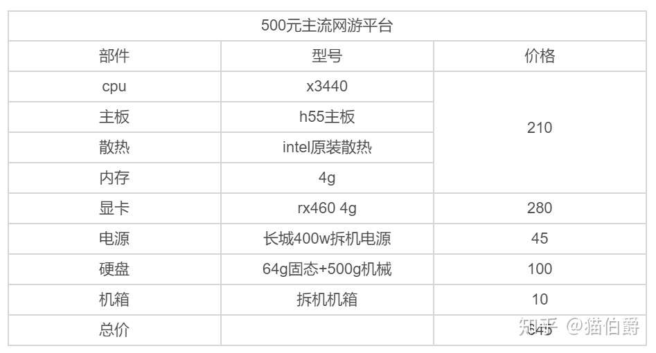这套配置的价格可以继续进行压缩,主板和cpu普遍都可以在50元左右拿下,散热可以购买双热管的超频三散热器,价格在20元左右浮动,4g内存也已经进入了白菜价的状态,因此价格可以压到160-200左右,显卡选择了比较新的rx460的4g版本,性能基本上和gtx760持平,大部分游戏都要比gtx1050低10帧左右,价格仅仅是1050的一半。